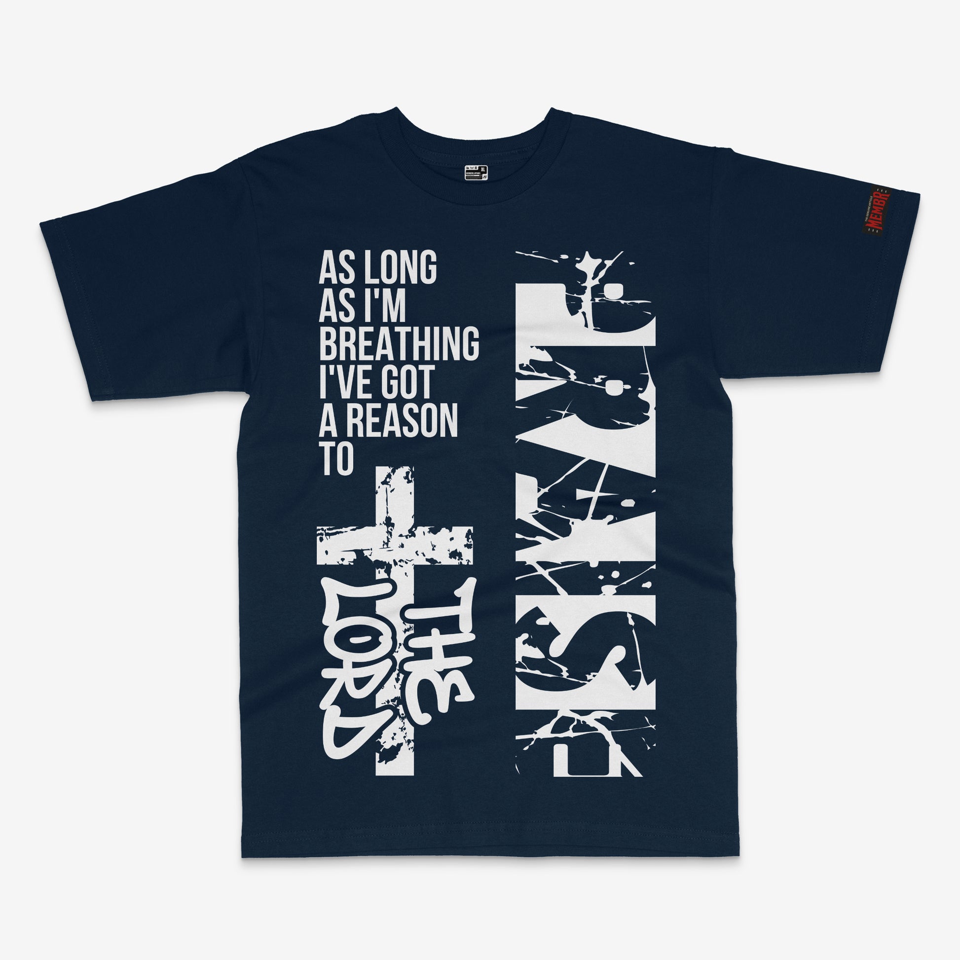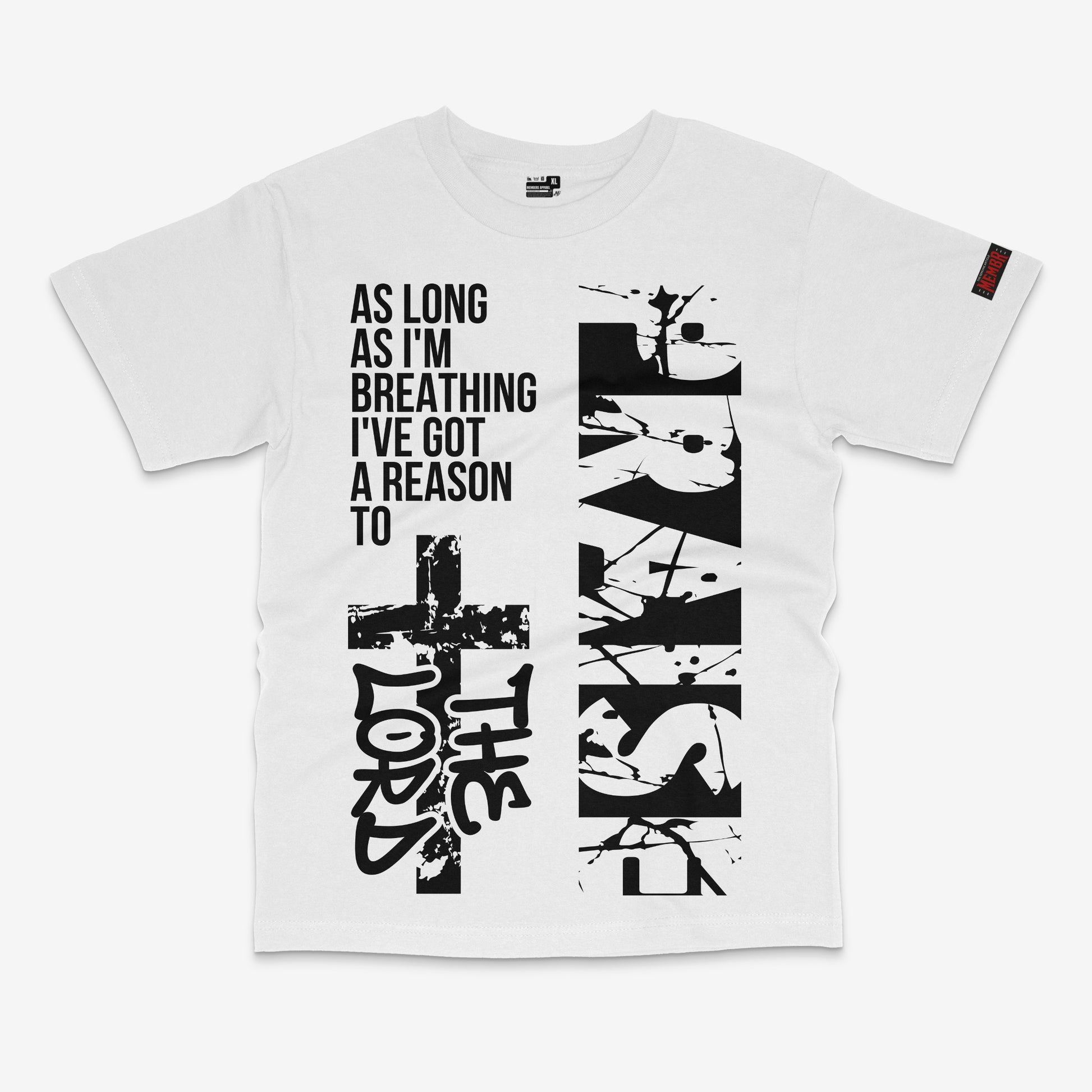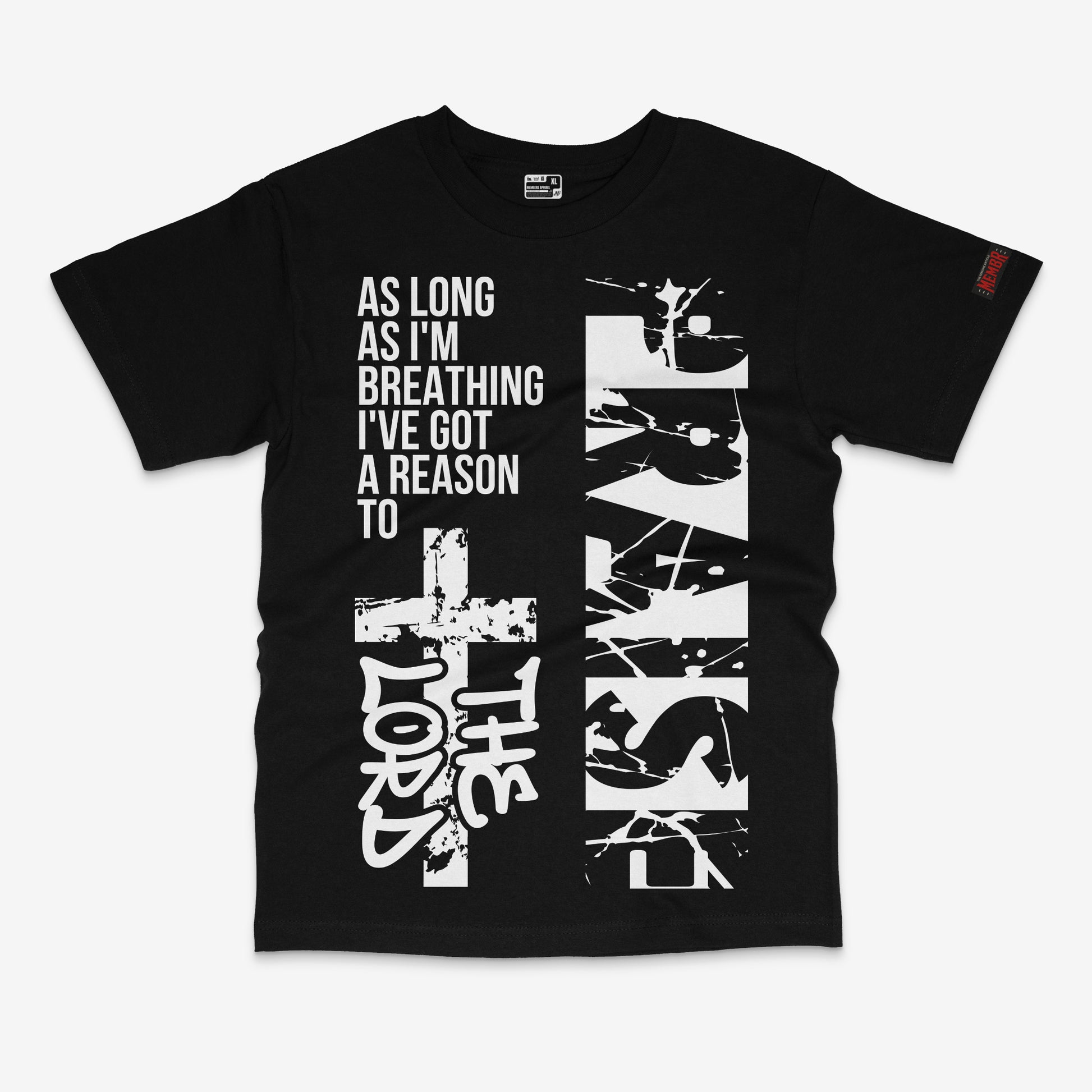 A sleek tee with a powerful message of worship and endurance: “As long as I’m breathing, I’ve got a reason to praise the Lord.” The high-contrast and artistic design make it a standout expression of faith and purpose.