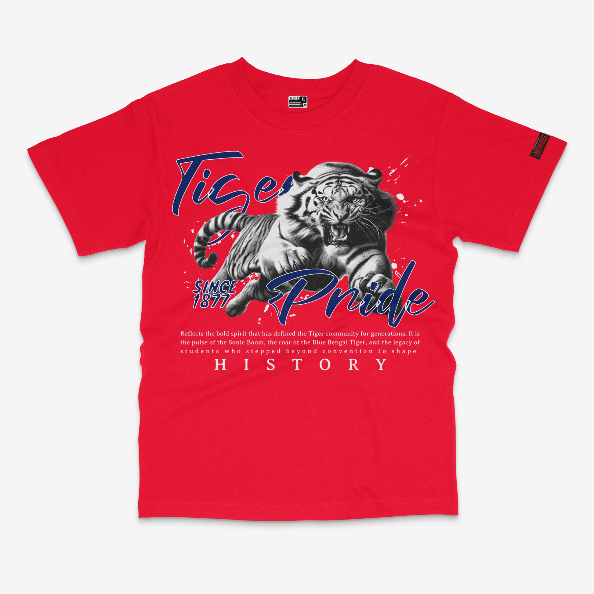 Featuring a powerful charging tiger graphic, vibrant “Tiger Pride” lettering, and a tribute to legacy and history since 1877, this premium tee celebrates the spirit, strength, and tradition of the Tiger community. Available in red & navy, perfect for the SWAC Championship game, campus events, or everyday wear.